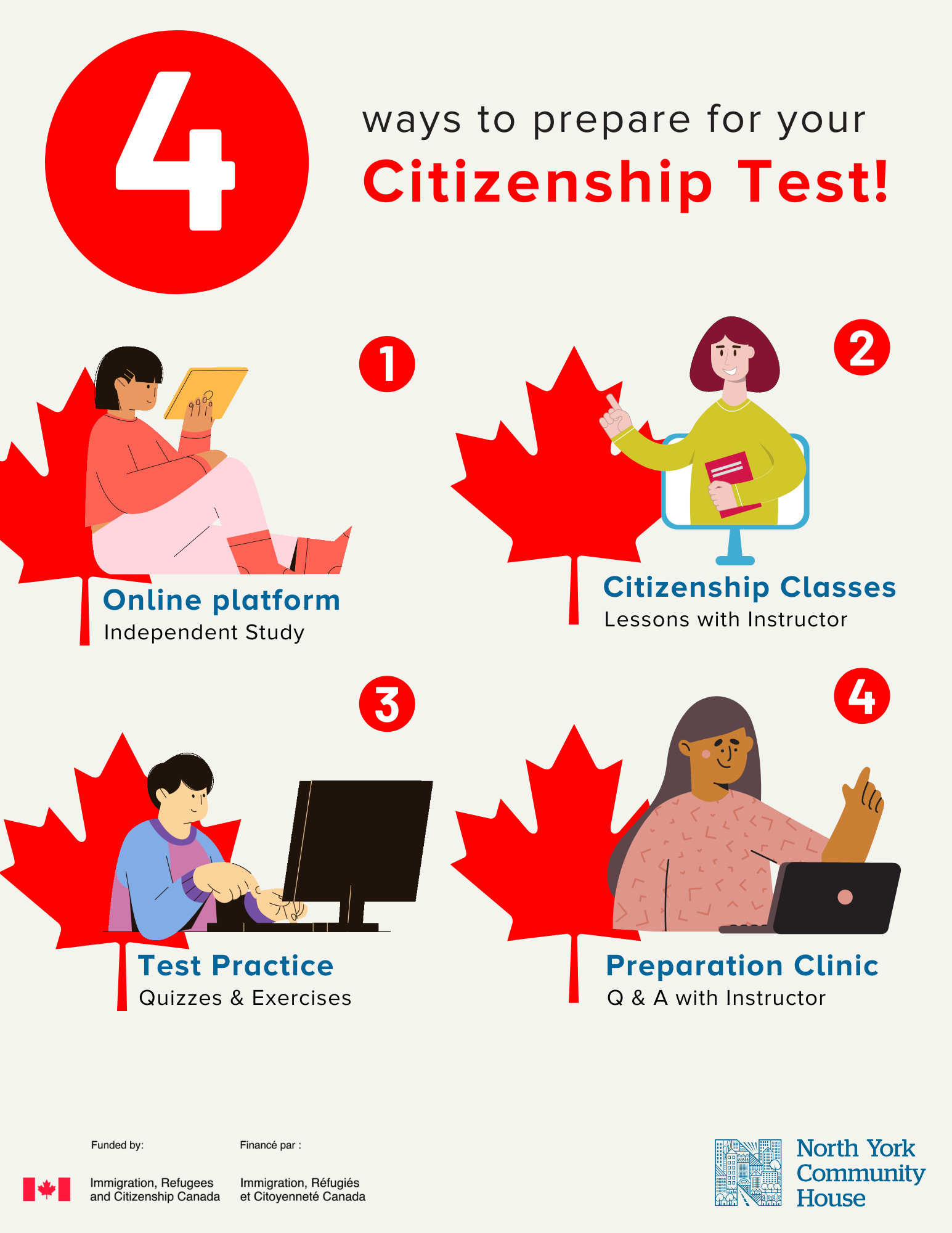 The citizenship course will only be offered online via Zoom. Canadian Citizenship Test Preparation Classes in Peel. We can refer you to legal organizations for legal assistance.